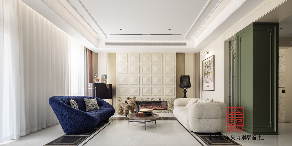 褪去城市繁冗華麗的外殼,回歸至與人的內在共鳴,斑駁的光影在客廳空間徜徉,大理石與墻板的搭配,釋放出一種優雅、沉靜及治愈的氛圍感,貫穿于整個別墅裝修空間的動線。